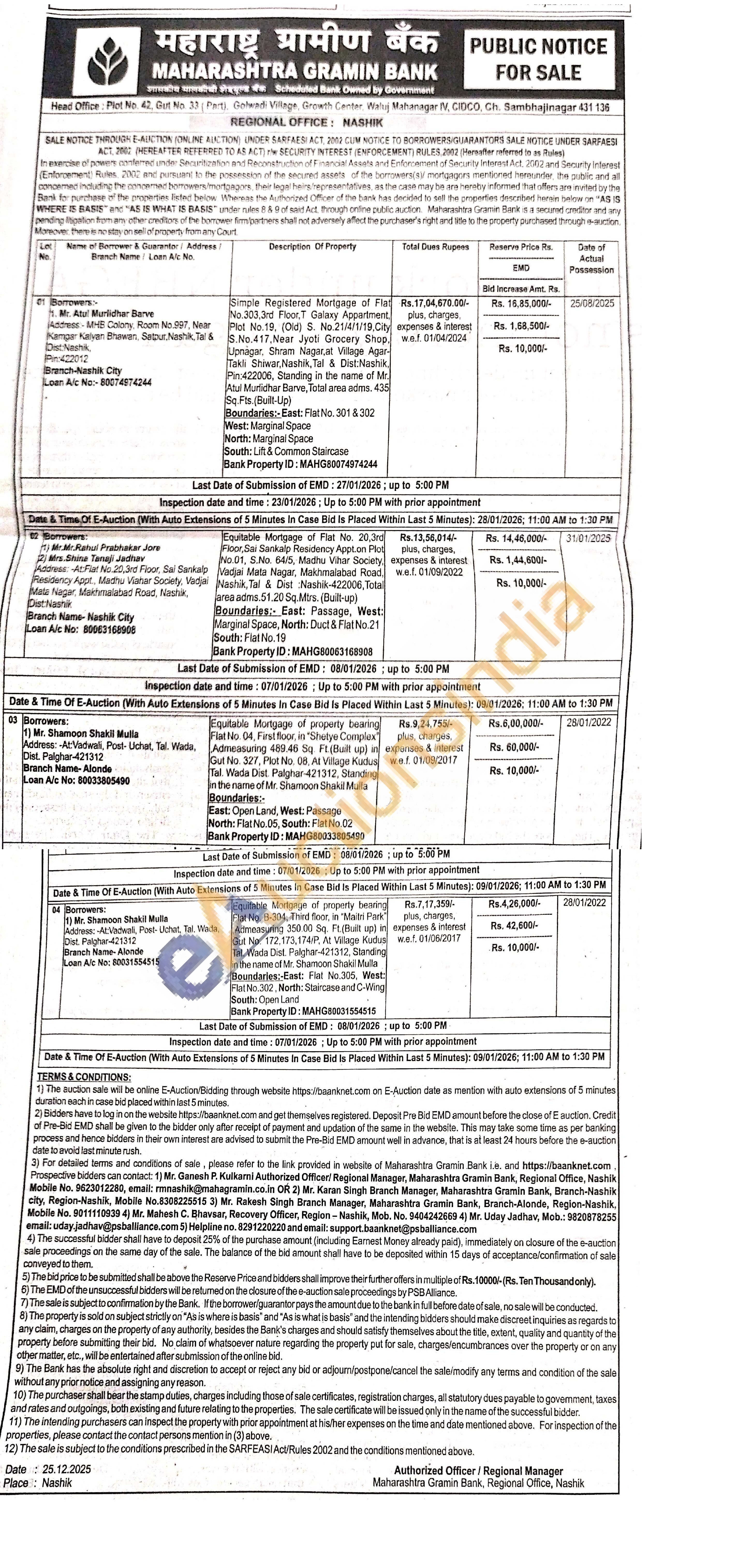 Mr. Ganesh P. Kulkarni Authorized Officer/9623012280,