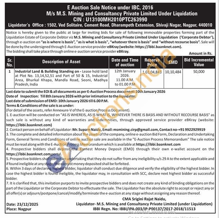 Contact Liquidator: Mr. Suparn Naidu, Email: msmining.cirp@gmail.com, Contact no-+91 9922929919