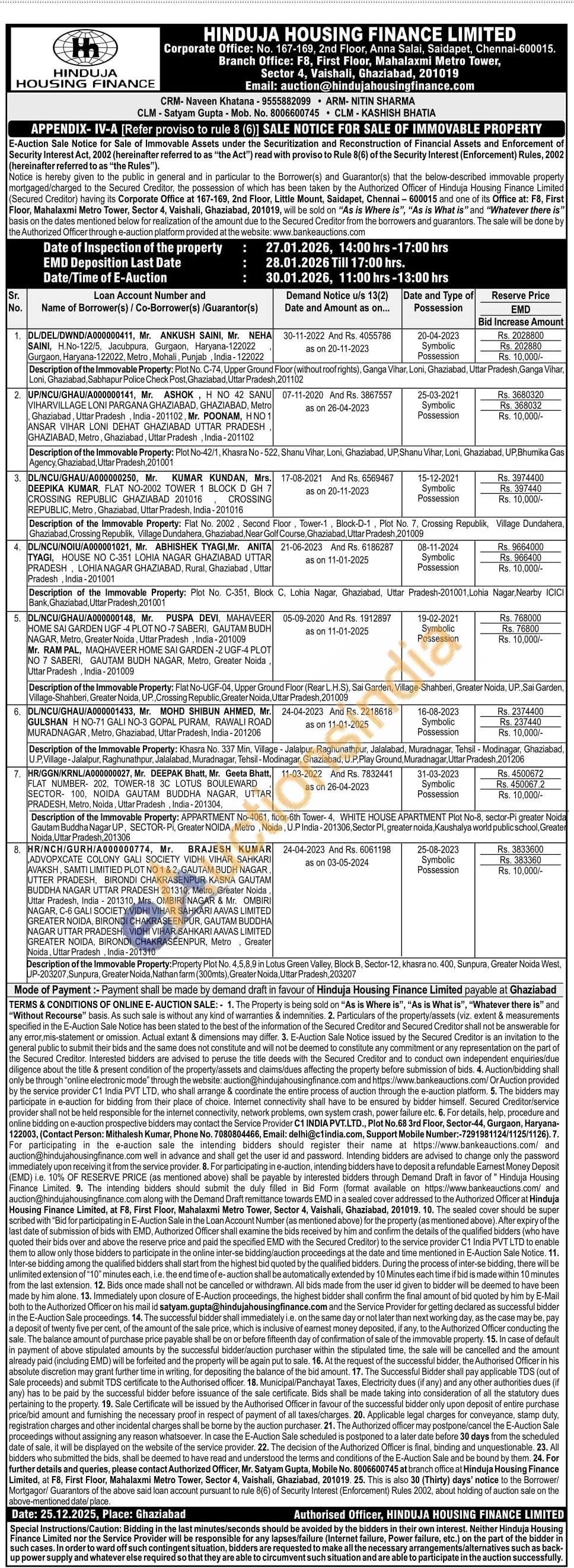 Authorized Officer, Mr. Satyam Gupta, Mobile No. 8006600745