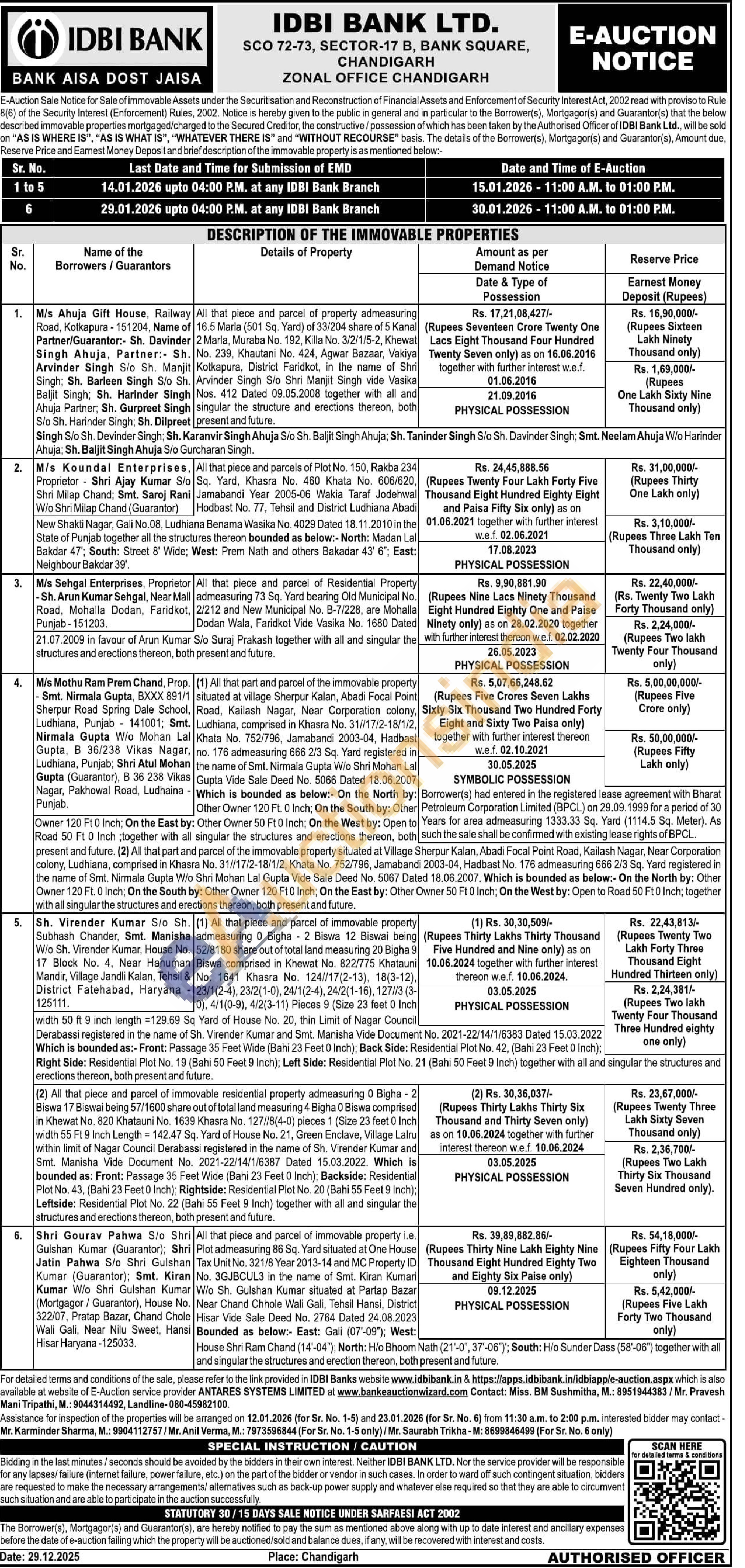 Mr Karminder Sharma ; 9904112757, 7973596844