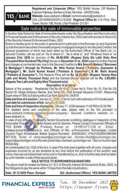 Nature of the property: Residential Flat No.09-10-03 (Tower No.9, Floor No 10, Flat No 03) Sector-35 Village Akbarpur Barota, Sub-Tehsil Rai, Distt Sonipat Haryana-131001. Measuring Super area of 1542 sq ft along with a Car Park Space No. 09-818