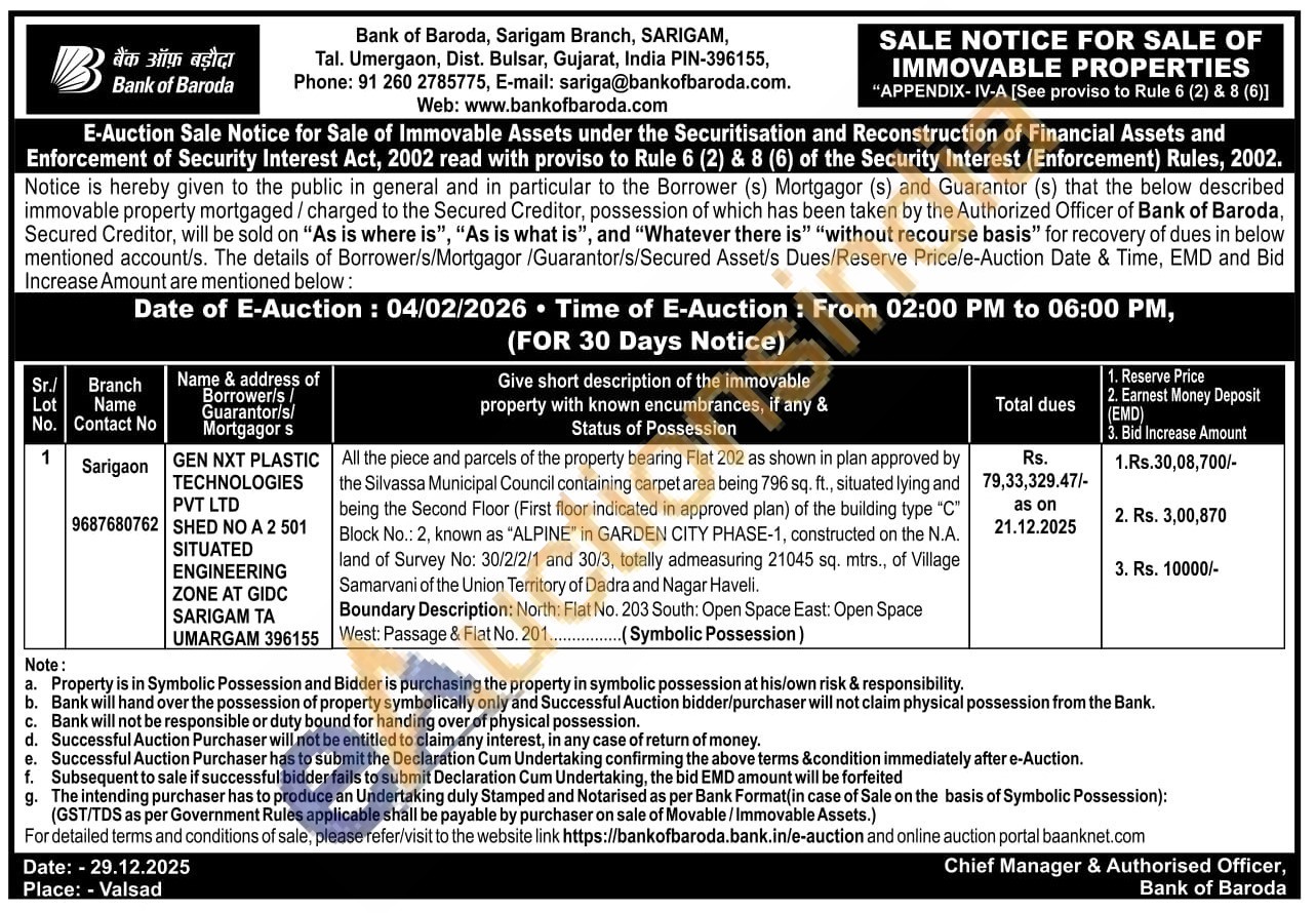 All the piece and parcels of the property bearing Flat 202 as shown in plan approved by the Silvassa Municipal Council containing carpet area being 796 sq. ft., situated lying and being the Second Floor (First floor indicated in approved plan) of the building type "C" Block No.: 2, known as "ALPINE" in GARDEN CITY PHASE-1, constructed on the N.A. land of Survey No: 30/2/2/1 and 30/3, totally admeasuring 21045 sq. mtrs., of Village Samarvani of the Union Territory of Dadra and Nagar Haveli
