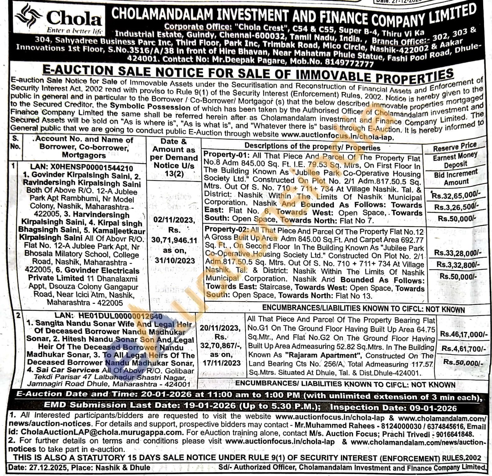 All That Piece And Parcel Of The Property Bearing Flat No.G1 On The Ground Floor Having Built Up Area 64.75 Sq.Mtr., And Flat No.G2 On The Ground Floor Having Built Up Area Admeasuring 52.82 Sq.Mtrs. In The Building Known As "Rajaram Apartment", Constructed On The Land Bearing Cts No. 256/A, Total Admeasuring 117.57. Sq.Mtrs. Situated At Dhule, Tal. & Dist. Dhule-424001
