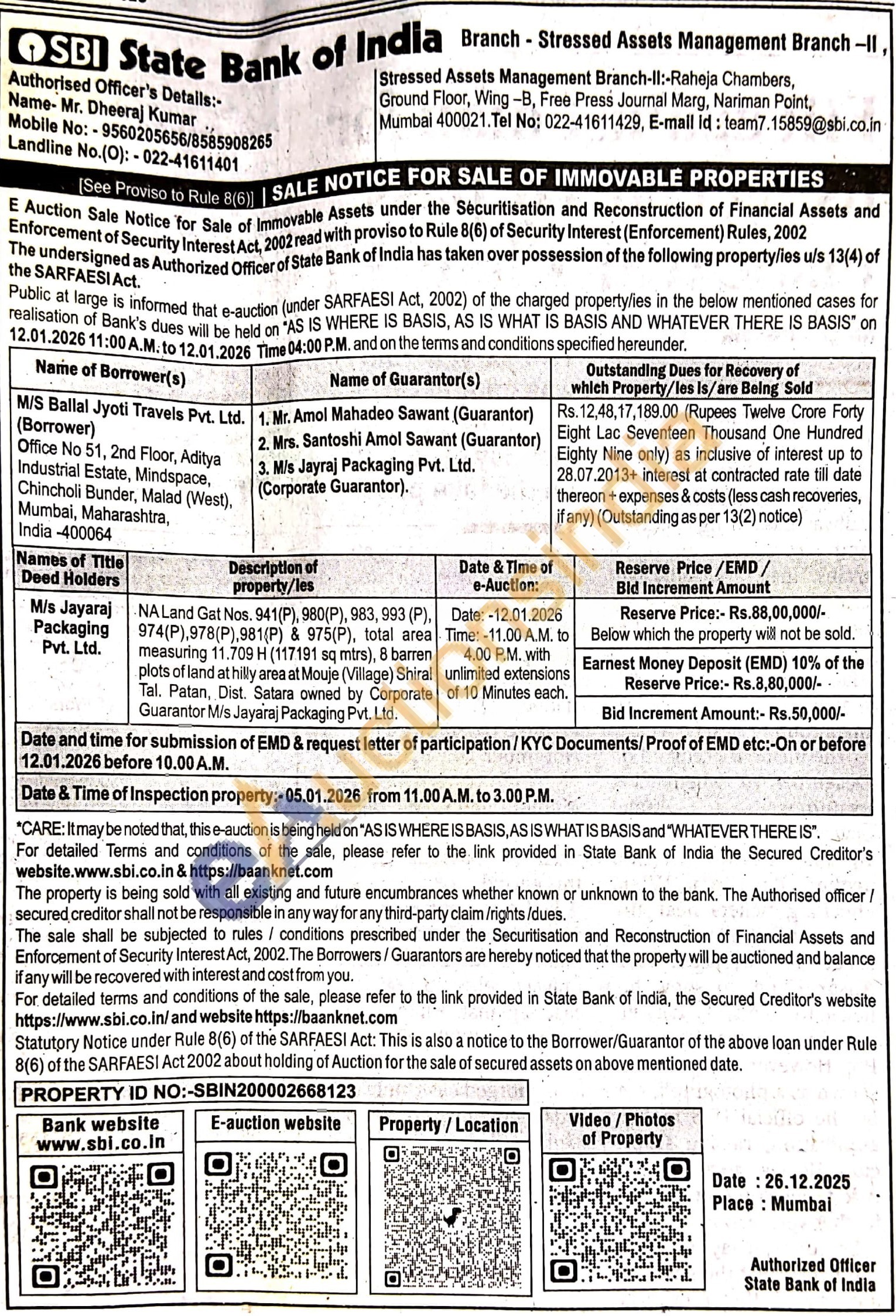 Authorised Officer's Details:- Mr. Dheeraj Kumar Mobile No:- 9560205656 / 8585908265 / Landline No.(O):-02241611401