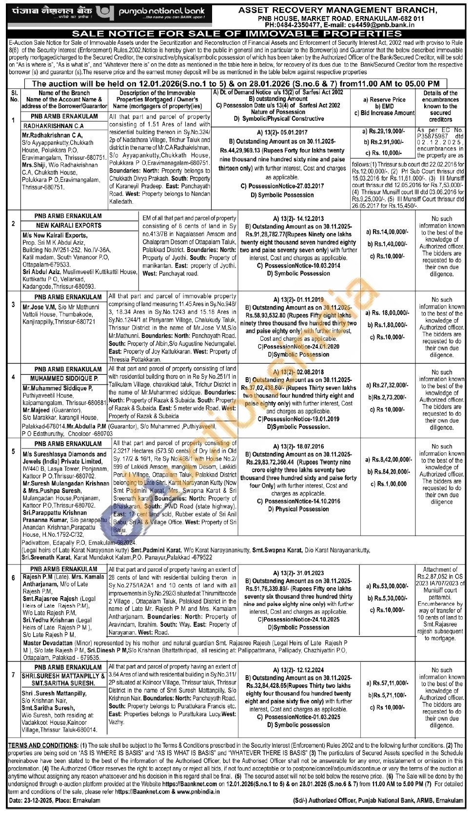 All that part and parcel of property consisting of land with residential building there on in Re Sy No.251/1 in Talikulam Village, chavakkad taluk, Trichur District in the name of Mr.Muhammed siddique. Boundaries: North: Property of Razak & Subaida. South: Property of Razak & Subaida. East: 5 meter wide Road. West: Property of Razak & Subaicia