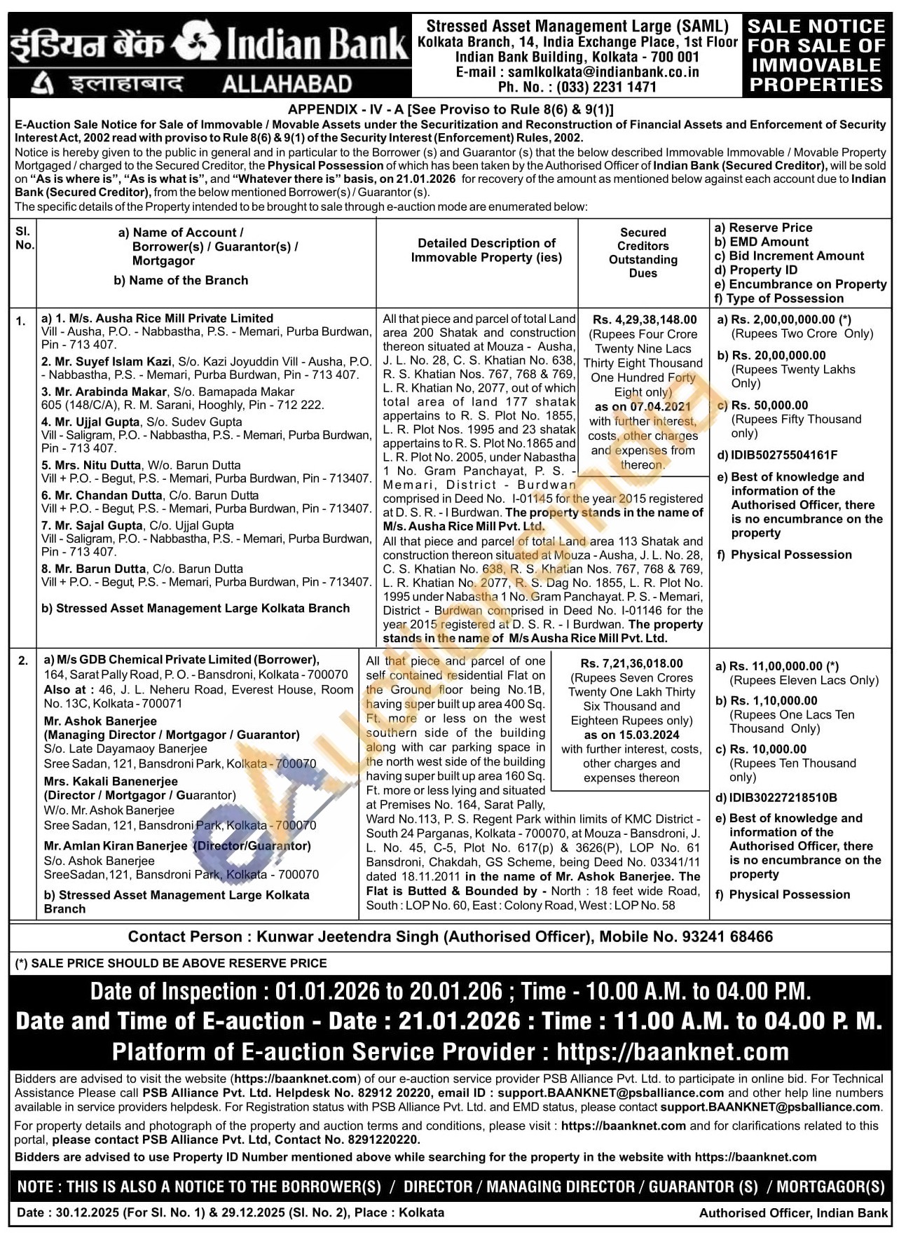Contact Person: Kunwar Jeetendra Singh (Authorised Officer), Mobile No. 93241 68466