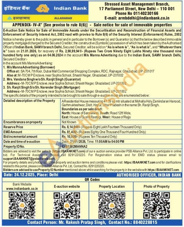 AResidential House measuring 47.39 sq mtr situated at Mohalla Holy Zamindaran Hanood, Garhmukteshwar, Distt. Hapur, Uttar Pradesh in the name Sh. Ranjit Singh.