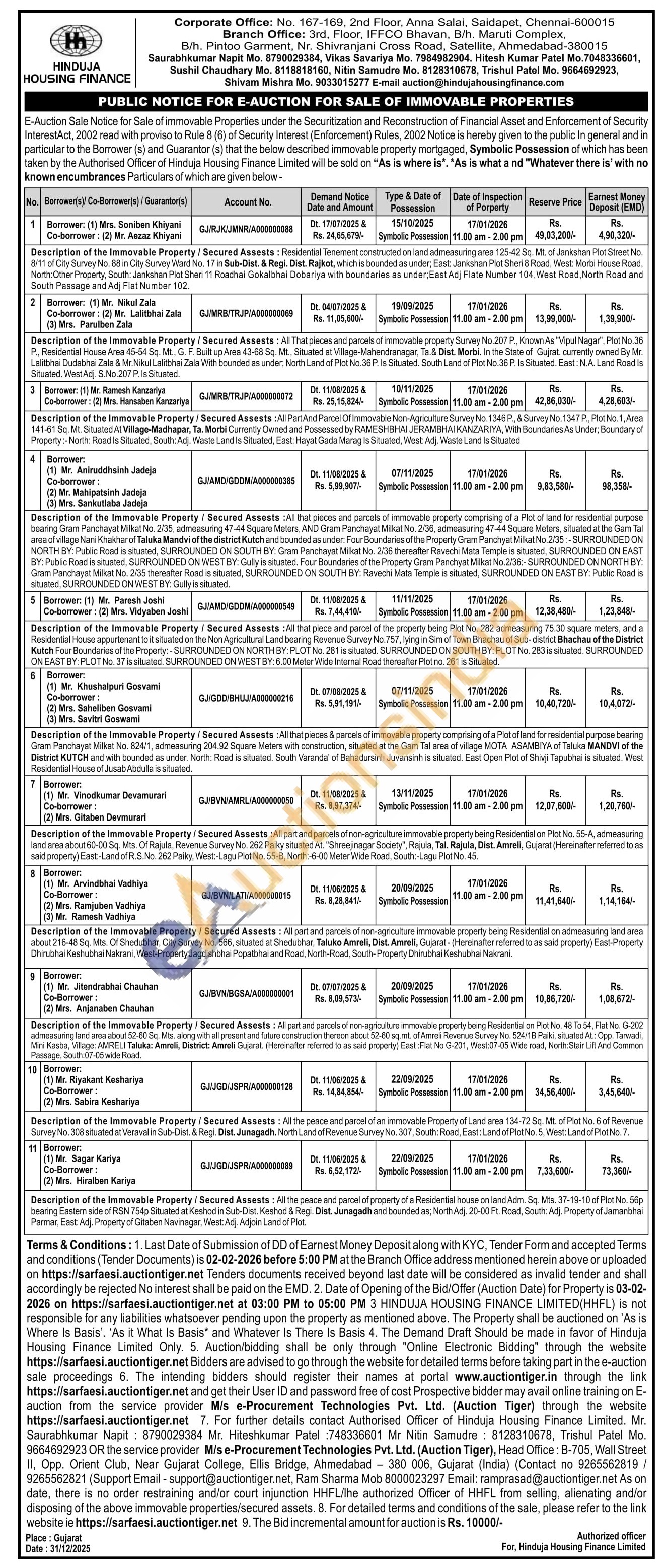 Description of the Immovable Property / Secured Assests: Residential Tenement constructed on land admeasuring area 125-42 Sq. Mt. of Jankshan Plot Street No. 8/11 of City Survey No. 88 in City Survey Ward No. 17 in Sub-Dist. & Regi. Dist. Rajkot, which is bounded as under, East: Jankshan Plot Sheri 8 Road, West: Morbi House Road, North: Other Property, South: Jankshan Plot Sheri 11 Roadhai Gokalbhai Dobariya with boundaries as under; East Adj Flate Number 104, West Road, North Road and South Passage and Adj Flat Number 102.