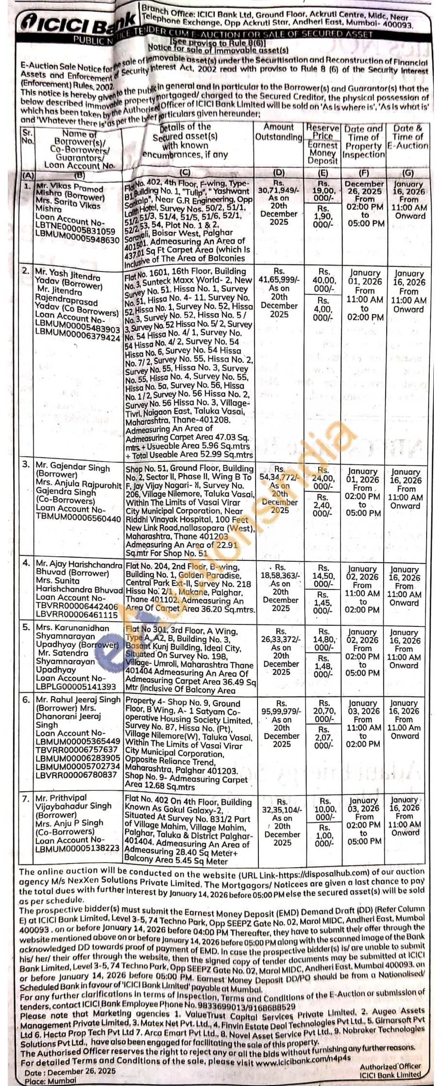 Flat No 301, 3rd Floor, A Wing. Type A, A2, B, Building No. 3, Basant Kunj Building, Ideal City. Situated On Survey No. 198, Village-Umroli, Maharashtra Thane 401404 Admeasuring An Area Of Admeasuring Carpet Area 36.49 Sq Mtr (Inclusive Of Balcony Area