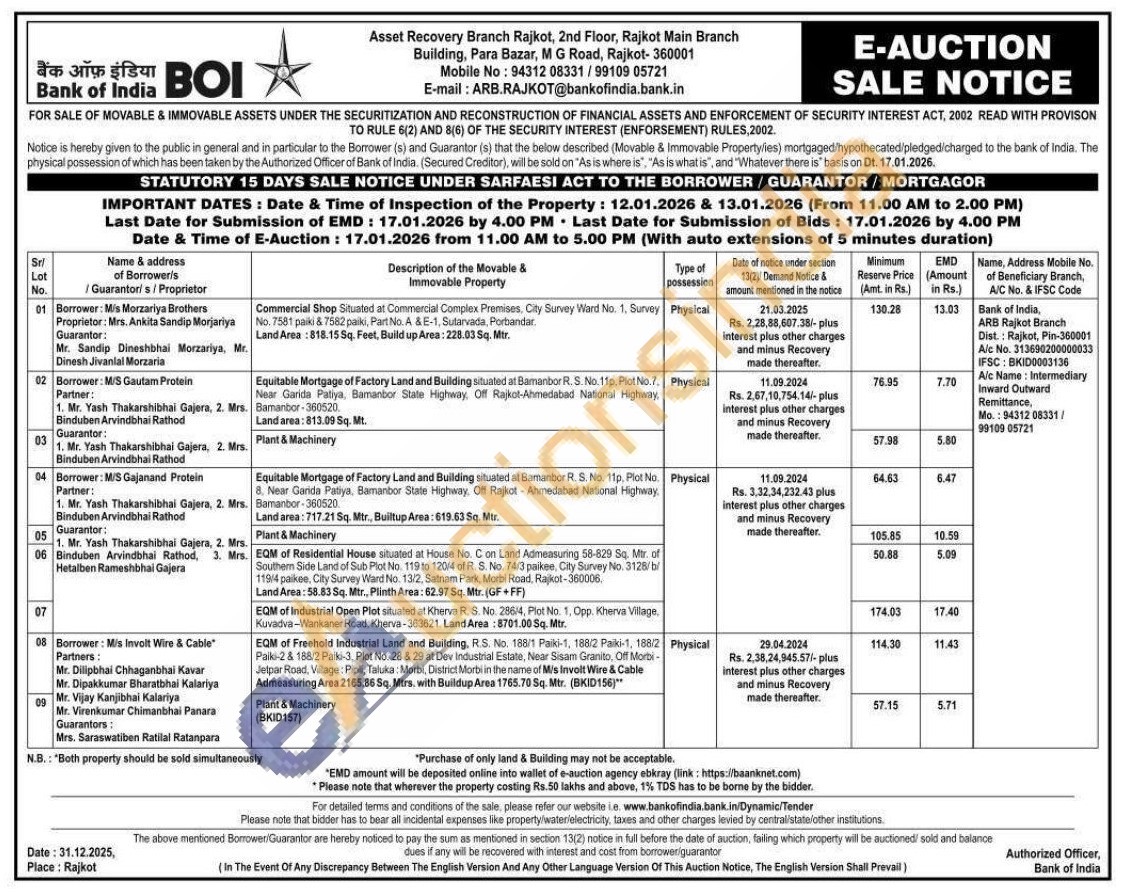 Commercial Shop Situated at Commercial Complex Premises, City Survey Ward No. 1, Survey No. 7581 paiki & 7582 paiki, Part No. A & E-1, Sutarvada, Porbandar. Land Area: 818.15 Sq. Feet, Build up Area: 228.03 Sq. Mtr.