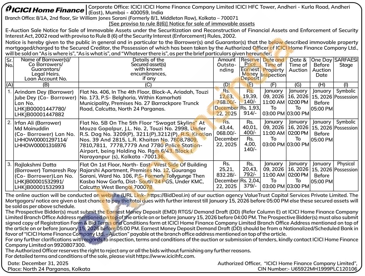 Flat No. 5B On The 5th Floor "Swagat Skyline" At Mouza Gopalpur, J.L. No. 2, Touzi No. 2998, Under R.S. Dag No. 3209(P), 3211(P),3212(P), R.S. Khatian Nos. 39 And 2815, L.R. Khaitan No. 7808,7809, 7810,7811, 7778,7779 And 7780 Police Station-Airport, being Holding No. Rgm 6/43, Block I, Narayanpur (s). Kolkata -700136.