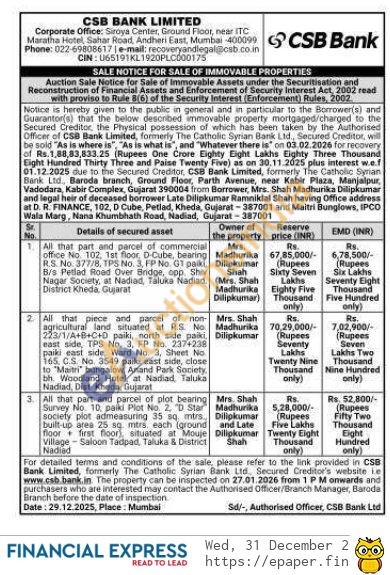 All that part and parcel of commercial office No. 102, 1st floor, D-Cube, bearing R.S. S.No. 377/8, TPS No. 1.3. 3, FP FP No No. 01 paiki, B/s Petlad Roed Over Endge, opp. Shiv Nager Society, at Nadiad, Taluka Nadiad. District Kheda, Gujarat