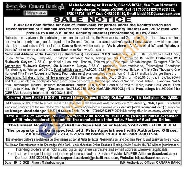 All that the open land adm. Ac. 3.00 Gts. or 14520.00 Sq.yds. in Sy.No. 98/A4 and 96/C3 situated in Ippalapally Village and gram panchayath Thimmajipet Mandal Nagarkurnool District, Telangana. NALA from Thimmajipet Mandal Tahsildar