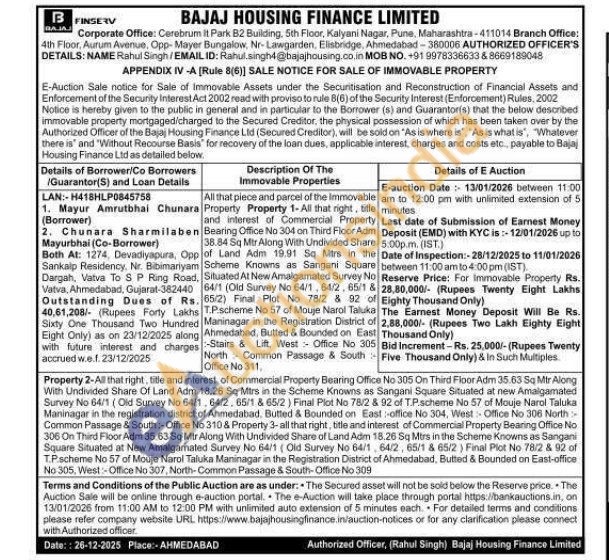 All that piece and parcel of the Immovable Property Property 1-All that right, title and interest of Commercial Property Bearing Office No 304 on Third Floor Adm 38.84 Sq Mtr Along With Undivided Share of Land Adm 19.91 Sq Mtrs in the Scheme Knowns as Sangani Square Situated At New Amalgamated Survey No 64/1 (Old Survey No 64/1, 64/2, 65/1 & 65/2) Final Plot No 78/2 & 92 of T.Pischeme No 57 of Mouje Narol Taluka Maninagar in the Registration District of Ahmedabad, Butted & Bounded on East Stairs & Lift, West Office No 305 North Common Passage & South Office No 311,