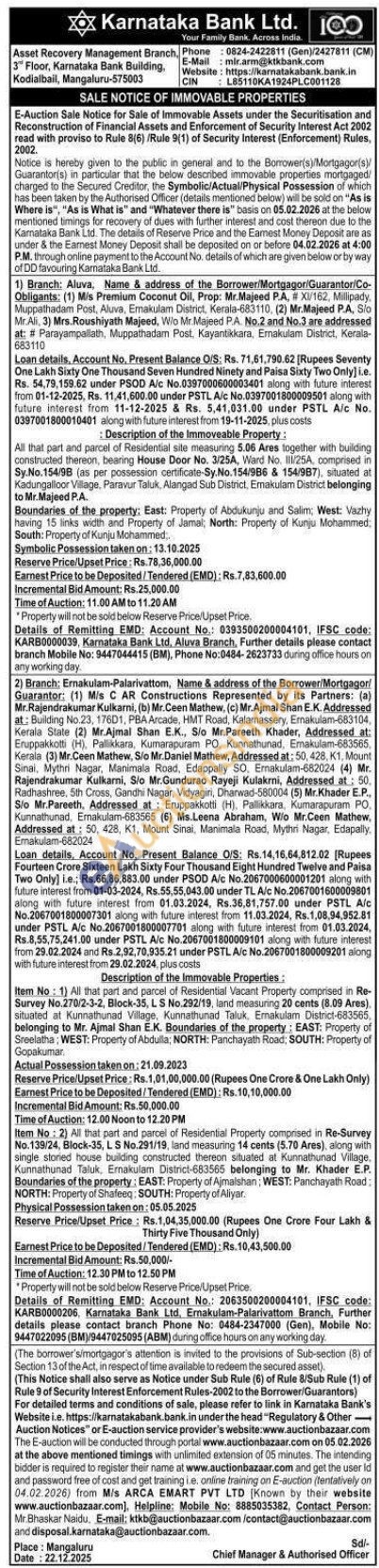 All that part and parcel of Residential site measuring 5.06 Ares together with building constructed thereon, bearing House Door No. 3/25A, Ward No. III/25A, comprised in Sy.No.154/98 (as per possession certificate-Sy.No.154/986 & 154/987), situated at Kadungalloor Village, Paravur Taluk, Alangad Sub District, Emakulam District belonging to Mr.Majeed P.A.