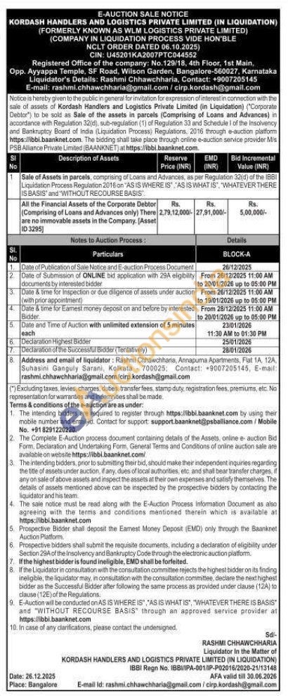 All the Financial Assets of the Corporate Debtor (Comprising of Loans and Advances only) There are no immovable assets in the Company. [Asset ID 32951