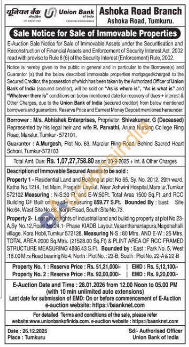Lease hoid rights of industrial land and building property at plot No 23-A.Sy No. 12. Road No.24,1- Phase KIADB Layout, Vasanthanarsapura, Nagenahalli village. Kora Hobli, Tumkur 572128. Measuring N-S: 80 Mirs. AND E-W: 25 Mtrs. TOTAL AREA 2000 Sq.Mtrs. (21528.00 Sq.Ft) & PLINT AREA OF RCC FRAMED STRUCTURE MEASURING 4886.43 S.FL. Bounded by: East: Park No. 5. West 18.00 Mirs Road bearing No 4, North: Plot No.: 23-B, South Plot No. 22-A & 22-B