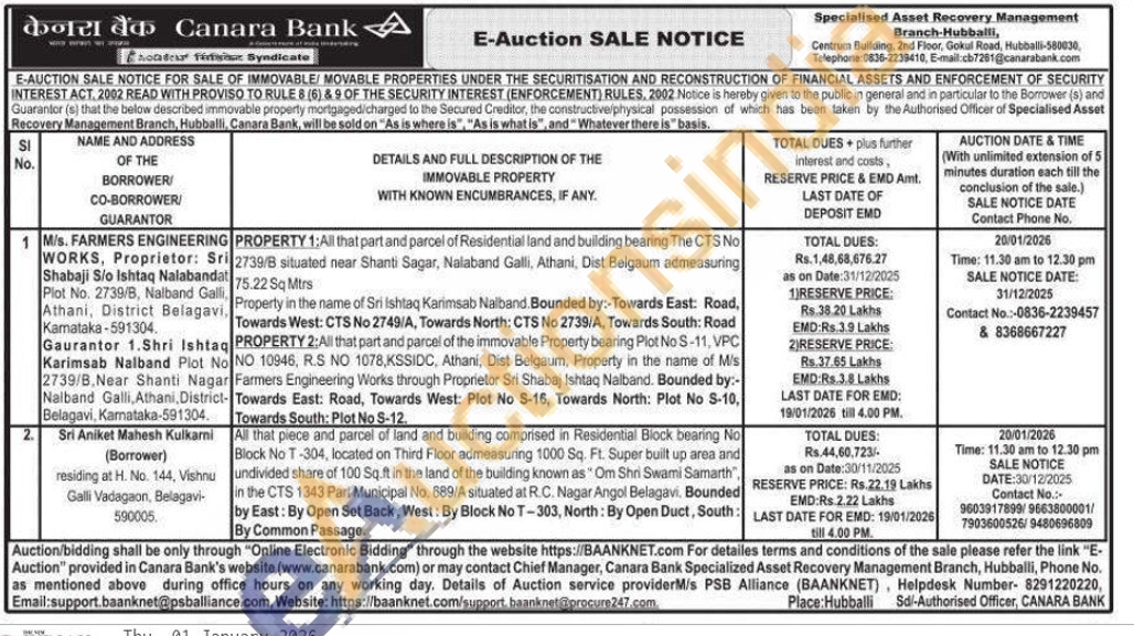 PROPERTY 2:All that part and parcel of the immovable Property bearing Plot No S-11, VPC NO 10946, R.S NO 1078, KSSIDC, Athani, Dist Belgaum, Property in the name of Mis Farmers Engineering Works through Proprietor Sri Shabaj Ishtaq Nalband. Bounded by:-Towards East: Road, Towards West: Plot No S-16, Towards North: Plot No S-10, Towards South: Plot No 5-12
