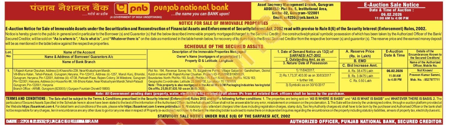Plot No. 194 Raveru Survey No. 75. Bagedirem Palms, Vilage Golpodi, Gandhidham Distrid Kutch in name of Me Rajesh Kumar Chahan. Property ID-PUNENEB 10856829 Boundaries Nurth Plot No. 193, South Plut No.106. Esst Roast West: Plot No. 1824 163 Geographic Code 23.0080 15 Longade 70 100315