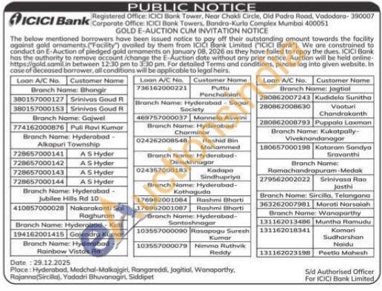 ICICI Bank Gold Auctions Auction in Hyderabad