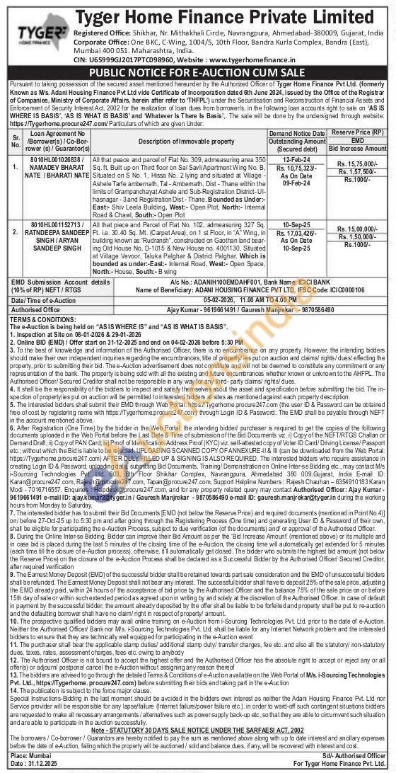 All that piece and Parcel of Flat No. 102, admeasuring 327 Sq. Ft. i.e. 30.40 Sq. Mt. (Carpet Area), on 1 st Floor, in "A" Wing, in building known as "Rudransh", constructed on Gaothan land bear-ing Old House No. D-1015 & New House no. 4001130, Situated at Village Vevoor, Taluka Palghar & District Palghar. Which is bounded as under:-East:- Internal Road, West:- Open Space, North:-House, South:-B wing