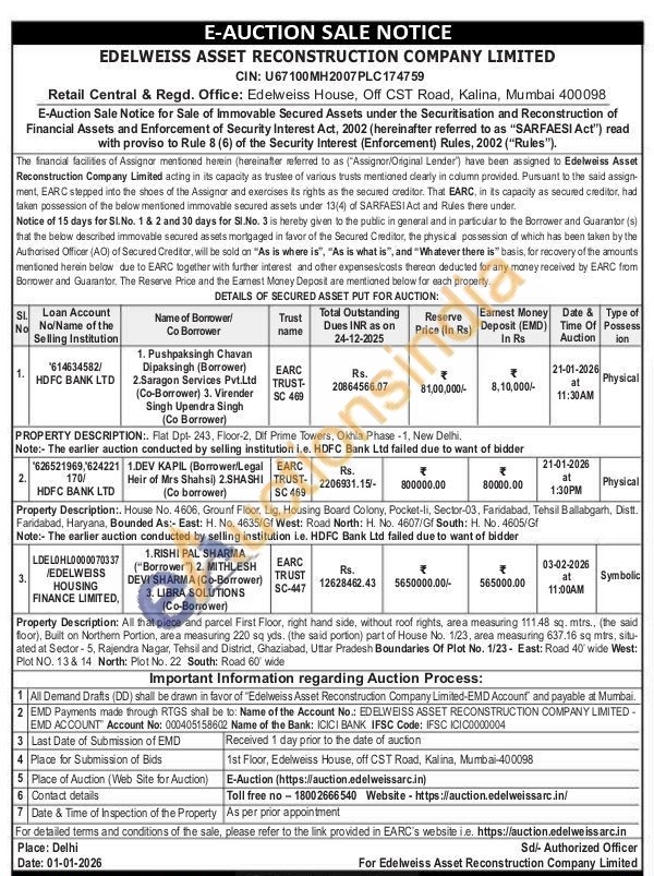 Property Description:. House No. 4606, Grounf Floor, Lig, Housing Board Colony, Pocket-li, Sector-03, Faridabad, Tehsil Ballabgarh, Distt. Faridabad, Haryana, Bounded As:- East: H. No. 4635/Gf West: Road North: H. No. 4607/Gf South: H. No. 4605/Gf