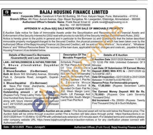 All That Piece And Parcel Of The Immovable Property Being Flat No 503, 5th Floor, Shreenathji Avenue, Shreenathji Park, RS No 2 paikee 1. Plot No 9. Zanzarda Mouje Bounded On East-Flat No Junagadh, Butted & 502, West- Margin Land, North Lift Passage And Flat No 504, South-Margin Land Than Plot No 8
