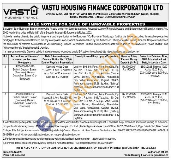 Unit No. 507, 5th Floor, Aviraj Pinnade, F.p. No. 39/1, R.s. No. 588. Tp.s. No. -80, Op. No.-39/1, Sp. No. 1, Mouje - Vatva, Taluka -Vavta, District, Ahmedabad, Ahmadabad City, Vatva, Ahmedabad, Gujarat, 382405, Area admeasuring 27.59 Sq.Mtrs. (Built-up) alongwith undivided share in land adms 12.41 Sq.Mtrs.