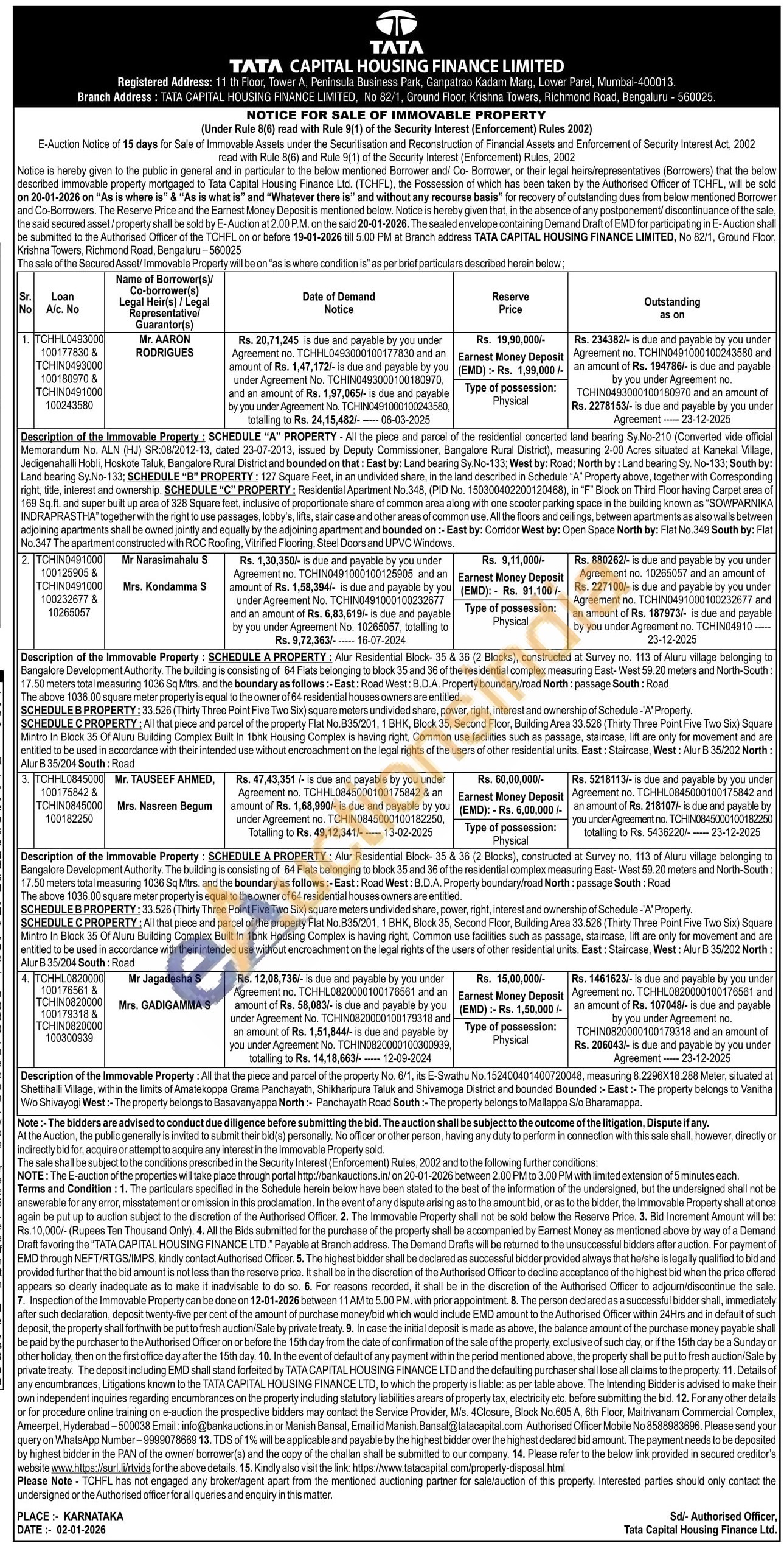 Description of the Immovable Property: All that the piece and parcel of the property No. 6/1, its E-Swathu No. 152400401400720048, measuring 8.2296X18.288 Meter, situated at Shettihalli Village, within the limits of Amatekoppa Grama Panchayath, Shikharipura Taluk and Shivamoga District and bounded Bounded:- East: The property belongs to Vanitha W/o Shivayogi West: The property belongs to Basavanyappa North:- Panchayath Road South :- The property belongs to Mallappa S/o Bharamappa