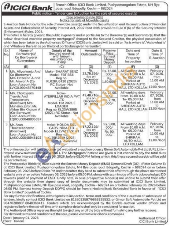• Auction End Time :  07-02-2026 12:00 PM
