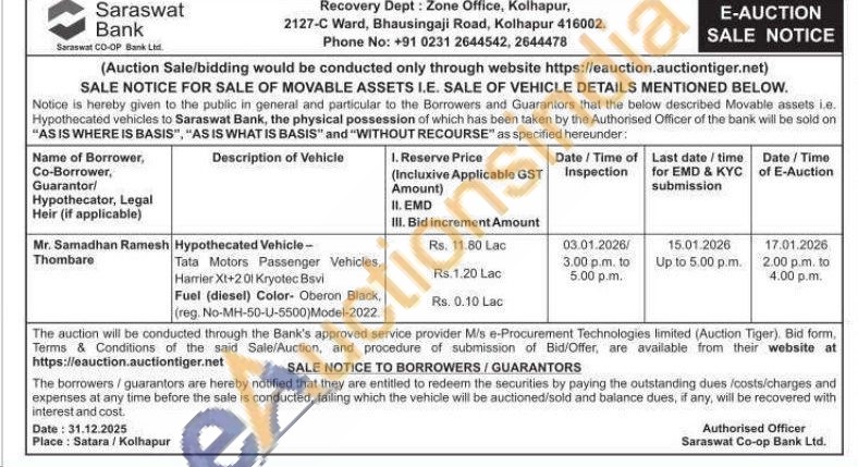 Hypothecated Vehicle- Tata Motors Passenger Vehicles, Harrier Xt+201 Kryotec Bsvi Fuel (diesel) Color- Oberon Black, (reg. No-MH-50-J-5500)Model-2022