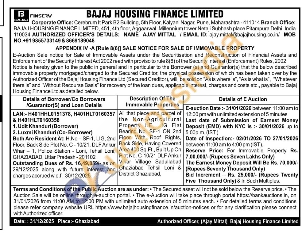 All that piece and parcel of the Non-Agricultural Property I.E, LIG Flat Bearing No. SF-1 ON 2nd Floor With Roof Rights, Back Side, Having Covered Area 400 Sq.Ft., Built Up On Plot No. C-10/21 DLF Ankur Vihar Village Sadullabad Ghaziabad Tehsil Loni & District Ghaziabad,
