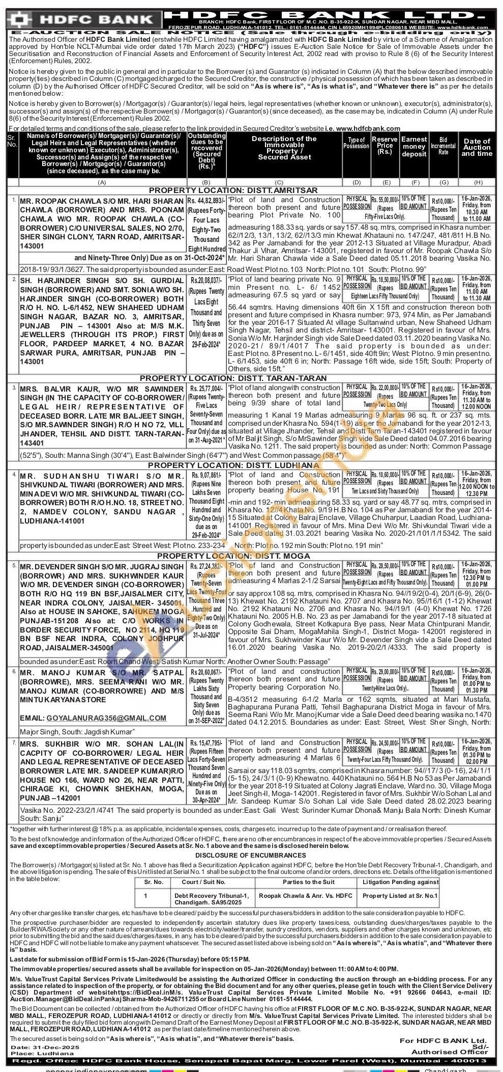 "Plot of land bearing private No. 9 admeasuring 67.5 sq yard or say min Present no. L-6/1452 56.44 sqmtrs. Having dimensions 40ft 6in X 15ft and construction thereon both present and future comprised in Khasra number: 973, 974 Min, as Per Jamabandi for the year 2016-17 Situated At village Sultanwind urban, New Shaheed Udham Singh Nagar, Tehsil and district- Amritsar-143001. Registered in favour of Mrs. Sonia W/o Mr. Harjinder Singh vide Sale Deed dated 03.11.2020 bearing Vasika No. 2020-21/89/1/4017 The said property is bounded as under: East Plot no. 8 Presentno. L-6/1451, side 40ft 9in; West: Plotno. 9 min presentno. L-6/1453, side 40ft 6 in; North: Passage 16ft wide, side 15ft; South: Property of Others, side 15ft."