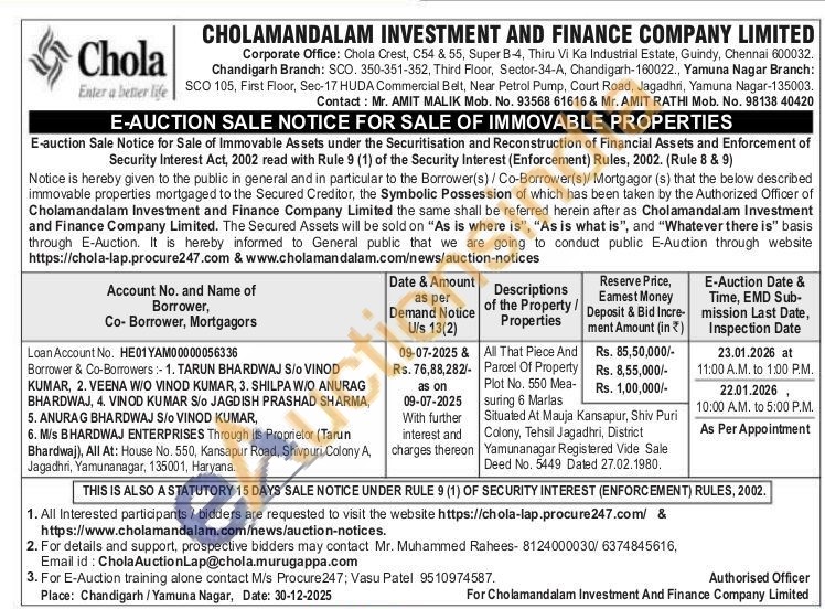 All That Piece And Parcel Of Property Plot No. 550 Measuring 6 Marlas Situated At Mauja Kansapur, Shiv Puri Colony, Tehsil Jagadhri, District Yamunanagar Registered Vide Sale
