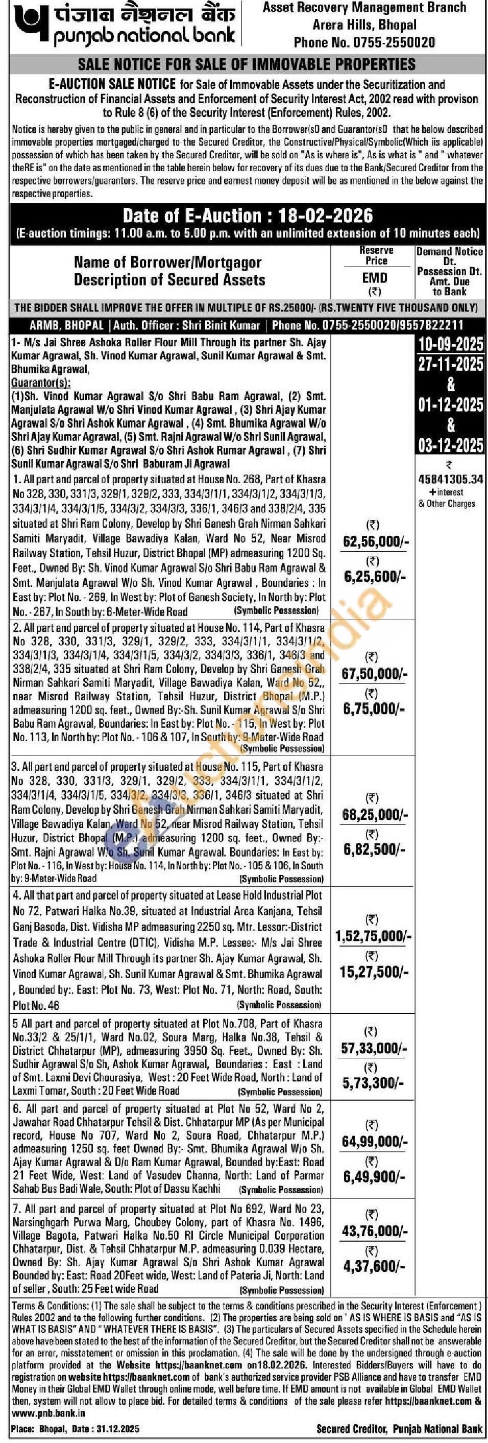 All part and parcel of property situated at Plot No 692, Ward No 23, Narsinghgarh Purwa Marg, Choubey Colony, part of Khasra No. 1496, Village Bagota, Patwari Halka No.50 RI Circle Municipal Corporation Chhatarpur, Dist. & Tehsil Chhatarpur M.P. admeasuring 0.039 Hectare, Owned By: Sh. Ajay Kumar Agrawal S/o Shri Ashok Kumar Agrawal Bounded by: East: Road 20Feet wide, West: Land of Pateria Ji, North: Land of seller, South: 25 Feet wide Road