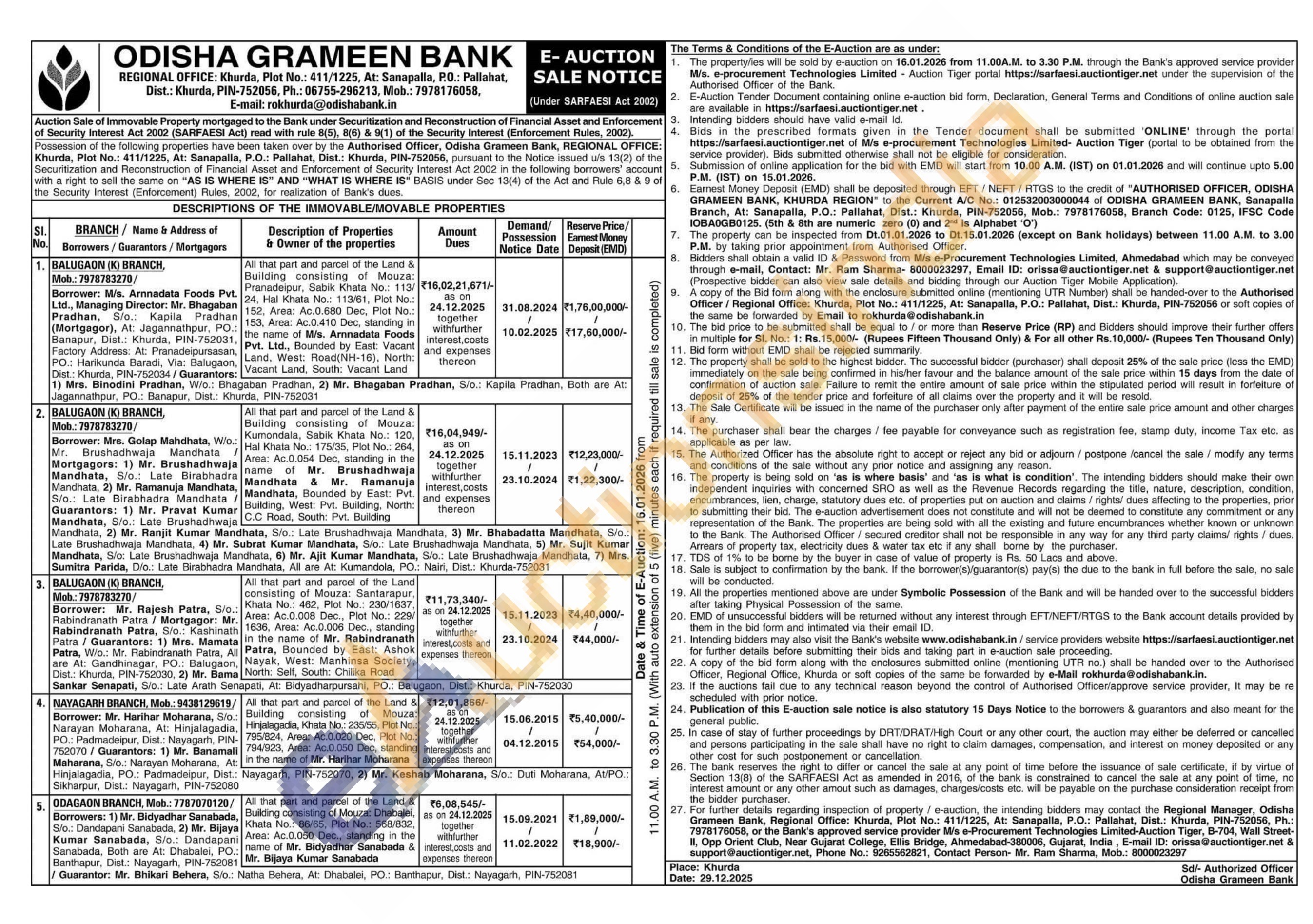 All that part and parcel of the Land & Building consisting of Mouza: Dhabalel, Khata No.: 86/65, Plot No.: 568/832, Area: Ac.0.050 Dec., standing in the name of Mr. Bidyadhar Sanabada & Mr. Bijaya Kumar Sanabada