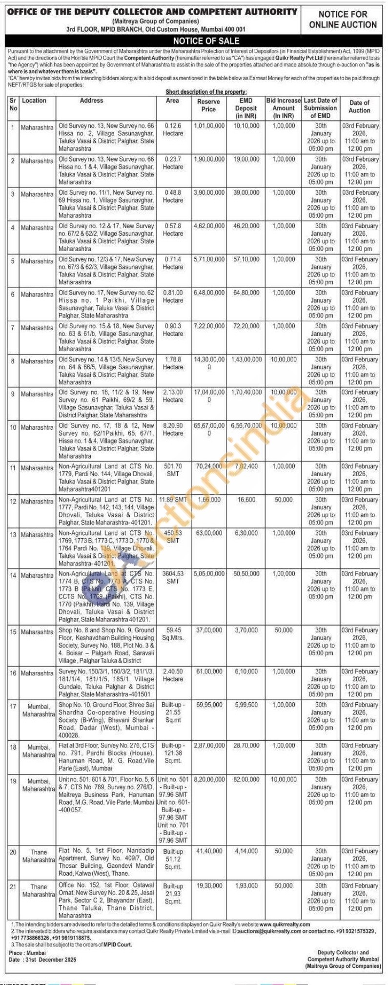 12) Non-Agricultural Land at CTS No. 1777, Pardi No. 142, 143, 144, Village Dhovali, Taluka Vasai & District Palghar, State Maharashtra-401201.