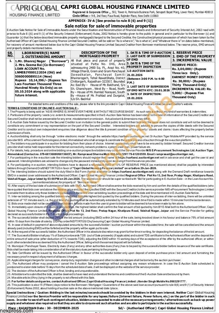 All that piece and parcel of property. situated at Patta No. 046, Area admeasuring 2400 Sq. Ft., Arazi No. 40, Village Dhardi, Gram and Gram Panchayat Dawadkalan, Panchayat Samiti Bhainsrogarh, Tehsil Rawatbhata, District Chittorgarh, Rajasthan-323307, Bounded As: East By House of Mr. Balchand, 5/0 Sh. Ghanshyam, West By Road, North By-House of Mr. Ramlal/ Narayan, South By -House of Mr. Prahlad and Durgalal, S/o Sh. Badrilal