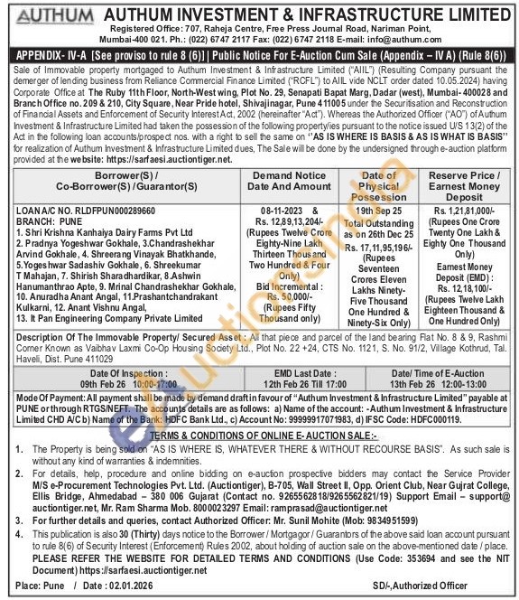 Authorized Officer: Mr. Sunil Mohite (Mobile No : 9834951599)