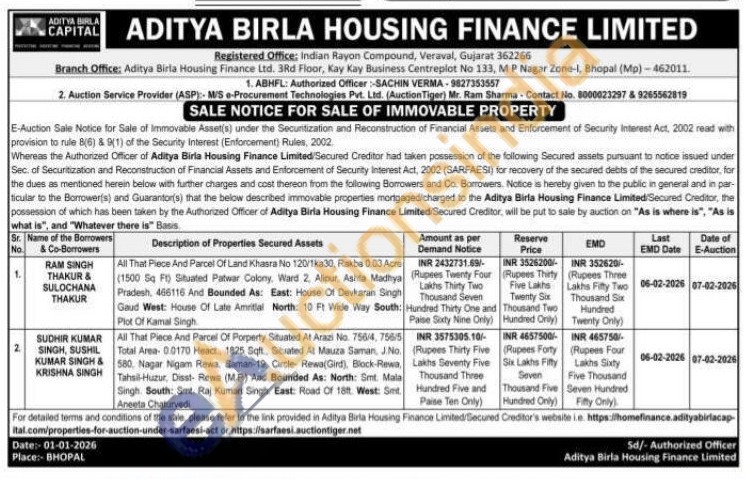 ABHFL: Authorized Officer: SACHIN VERMA-9827353557