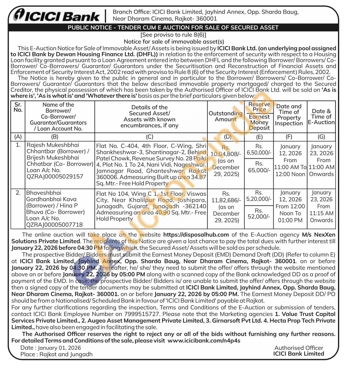 Flat No 104, Wing C 1, 1st Floor, Viswas City, Near Khalilpur Road, Joshipara, Junagadh, Gujarat, Junagadh -362140 Admeasuring an area 40.90 Sq. Mtr.- Free Hold Property