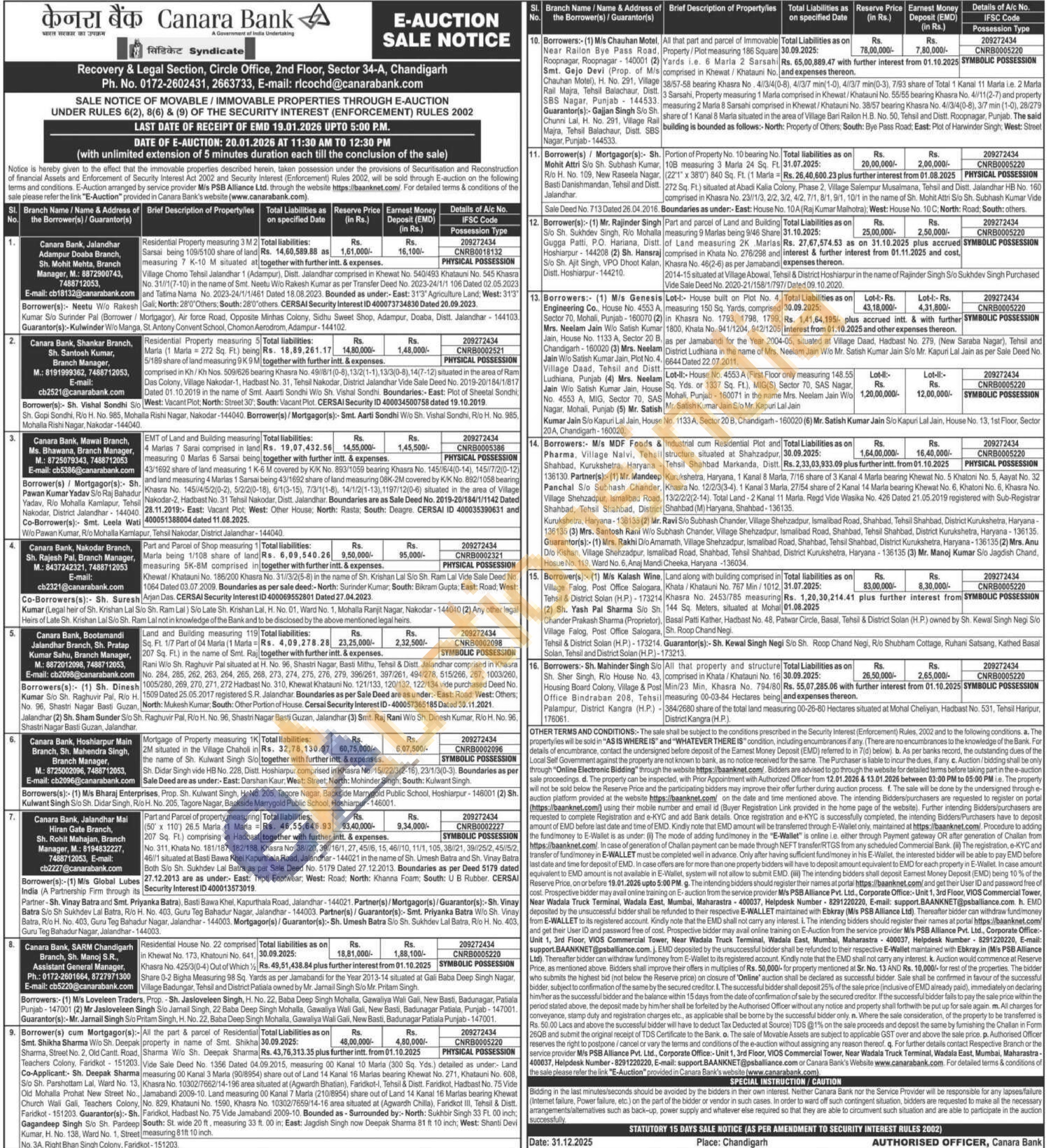 Residential Property measuring 3 M 2 Sarsai being 109/5100 share of land measuring 7 K-10 M situated at31'3Village Chomo Tehsil Jalandhar 1 (Adampur), Distt. Jalandhar comprised in Khewat No. 540/493 Khatauni No. 545 Khasra No. 31//1(7-10) in the name of Smt. Neetu W/o Rakesh Kumar as per Transfer Deed No. 2023-24/1/1 106 Dated 02.05.2023 and Tatima Nama No. 2023-24/1/1/461 Dated 18.08.2023. Bounded as under:- East: 31'3" Agriculture Land; West: 31'3" North: 28'0' Others: South: 28'0' others. CERSAI Security Interest ID 400073734830 Dated 20.09.2023.