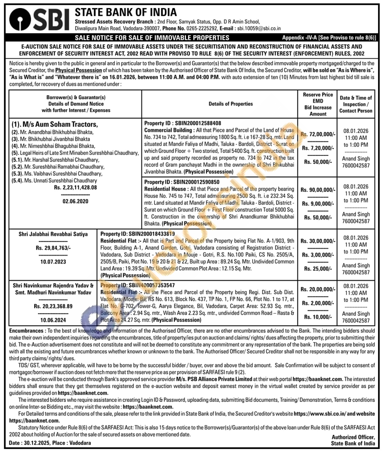 Commercial Building: All that Piece and Parcel of the Land of House No. 734 to 742, Total admeasuring 1800 Sq. ft. i.e 167-28 Sq. mtr. Land situated at Mandir Faliya of Madhi, Taluka - Bardoli, District - Surat on which Ground Floor + Two storied, Total 5400 Sq. ft. construction built up and said property recorded as property no. 734 to 742 in the tax record of Gram panchayat Madhi in the ownership of Shri Bhikubhai Jivanbhai Bhakta. (Physical Possession)