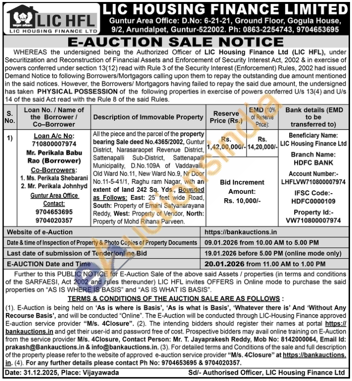 All the piece and the parcel of the property bearing Sale deed No.4365/2002, Guntur District, Narasaraopet Revenue District, Sattenapalli Sub-District, Sattenapalli Municipality, D.No.109A of Vaddavalli, Old Ward No. 11, New Ward No.9, Nr Door No.11-5-41/1, Raghu ram Nagar, with an extent of land 242 Sq. Yds., Bounded as Follows: East: 25' feet wide Road, South: Property of Emani Satyanarayana Reddy, West: Property of Vendor, North: Property of Mohd Rihana Parveen.