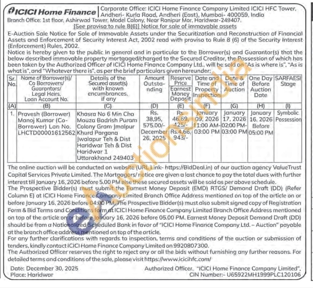 Khasra No 6 Min Cha Mauza Badrish Puram Colony Gram Jmalpur Khurd Pargana Jwalapur Teh & Dist Haridwar Teh & Dist Haridwar 1 Uttarakhand 249403