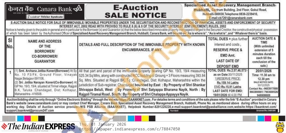 All that part and parcel of the immovable property bearing GP No. 19/3, 19/4 measuring 525.34 Sq Mtrs, along with constructed RCC building of Groung + 3 Floors measuring 393.84 Sq. Mtrs. Situated at Rajgoli BK, Tq :Chandagad, Dist: Kolhapur, Maharashtra within the Shivappa Beluli, West By Property of Shri Satyappa Bharama Nayik, North: By jurisdiction of Sub-registrar, Chandagad bounded by: East: By Property of Shri Shankar Rajgoli Tiramal Road, South: By Property of Shri Chalappa Appayya Nayik.