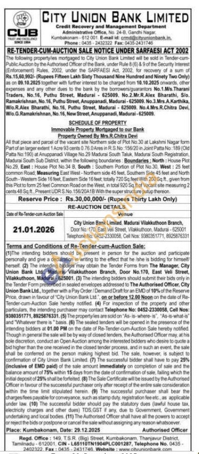 All that piece and parcel of the vacant site Northem side of Plot No. 30 at Lakshmi Nagar form Part of an larger extent 1 Acre 93 cents 0.76.0 Ares in R.S.No : 156/20 in Joint Patta No : 189 (Old Patta No. 190) at Anuppanadi Village No. 29 Madurai South Taluk, Madurai South Registration, Madurai South Sub District, within the following boundaries Boundaries: North: House Plot No.29, East: House Plot No.34 B, South: Southem Portion of Plot No.30, West: 25 feet common Road, Measuring East West-Northern side 45 feet, Southem Side 45 feet and North South-Western Side 16 feet, Eastern Side 16 feet totally 720 Sq feet With 200 Sqft, given from this Plot to form 25 feet Common Road on the West, in total 920 Sq ft of Vacant site measuring 2 cents 48 Sq.ft. Present UDR S.No. 156/20A1B With the super structure putup thereon
