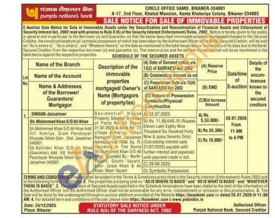 Residential House at Property Situated Houte 21.02.2025 & Book No 72 village kohariya, tehsil Ramgarh Distt. Jaisalmer Admeasuring 1890 Sq. Ft. Standing in The Name Sh Motimmed Khan 5/0 Ali Khan. Bounded By North-Vacant, South- Vacant, East- Jalaal Khan & Ali All Khan, West-Vacant