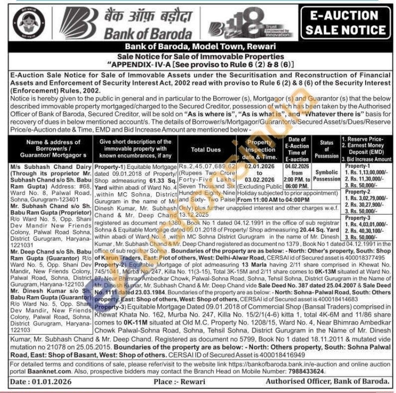 Property-3) Equitable Mortgage Dated 09.01.2018 of Commercial Shop (Bansal Traders) comprised in Khewat Khata No. 162, Murba No. 247, Killa No. 15/2/1(4-6) kitta 1, total 4K-6M and 11/86 share comes to OK-11M situated at Old M.C. Property No. 1208/15, Ward No. 4, Near Bhimrao Ambedkar Chowk Palwal-Sohna Road, Sohna, Tehsil Sohna, District Gurugram in the Name of Mr. Dinesh Kumar, Mr. Subhash Chand & Mr. Deep Chand. Registered as document no 5799, Book No 1 dated 18.11.2011 & mutated vide mutation no 21078 on 25.05.2015. Boundaries of the property are as below: - North: Others property, South: Sohna Palwal Road, East: Shop of Basant, West: Shop of others. CERSAI ID of Secured Asset is 400018416949