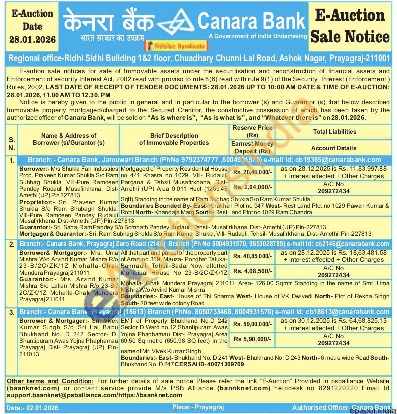 Mortgaged of Property Residential House no 441 Khasra no 1029, Vill- Rudauli, Pargana & Tehsil Musafirkhana, Dist-Amethi (UP) Area 0.011 Hect (1269.45 Sqft) Standing in the name of Ram Subhag Shukla S/o Ram Kumar Shukla